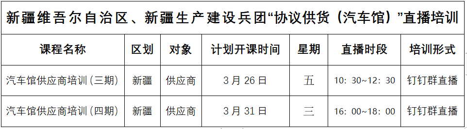 (5)为降低供应商操作难度,提高供应商自主申请协议效率,政采云有限公司将提供钉钉线上直播培训,培训计划如下: